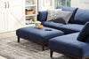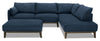 Create a fashionable feeling for your friends by adding this Gena two-piece, right-facing sectional to your living space. Part of the Cindy Crawford Home collection, deep blue linen-look fabric is draped over the sectional frame, offering elegance and charm to your home. You'll have no problem offering friends a seat on the sectional's high-density cushions, which are wrapped in fibre batting for an extra touch of comfort. Resting on a brown-hued solid wood base, this sectional sofa gives your home a sophisticated feel and a cozy resting place all in one.