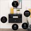 The prepac floating nightstand combines sleek design with space-saving functionality, making it an essential addition to your modern bedroom. Measuring 15"d x 22. 5"w x 14. 5"h, this floating nightstand in black features both a drawer and an open compartment, providing ample storage for bedside essentials like books, glasses, or electronic devices. With integrated openings for cord management on the top surface and within the compartment, this floating nightstand with drawer ensures a tidy and organized space. Its wall mounted nightstand design allows for flexible placement at any height, freeing up valuable floor space while maintaining a clean and contemporary aesthetic. Easy to install using prepac’s innovative mounting rail system, this wall mounted bedside table only requires locating the wall studs for a secure fit. Constructed from non-toxic, carb-2 compliant, laminated composite woods, it meets all north american safety standards, ensuring durability and environmental responsibility. This versatile floating side table doubles as a floating bedside shelf or a wall hanging bedside table, seamlessly blending into any decor style. Perfect for compact spaces, it serves as a practical solution for those seeking floating nightstands for bedroom use, offering a streamlined design that maximizes functionality. The sleek black finish complements both modern and contemporary interiors, making it a standout wall mounted bedside cabinet or a chic floating bedside table shelf. Its thoughtful construction supports the organization of personal items, while the smooth-gliding drawer ensures easy access to frequently used belongings. Manufactured in the usa and canada, this wall nightstand comes with a 5-year limited warranty, offering peace of mind and long-lasting quality. Whether you're upgrading your bedroom with a wall hanging nightstand or enhancing a cozy reading nook, this wall-mounted design adds elegance and functionality to your living space.