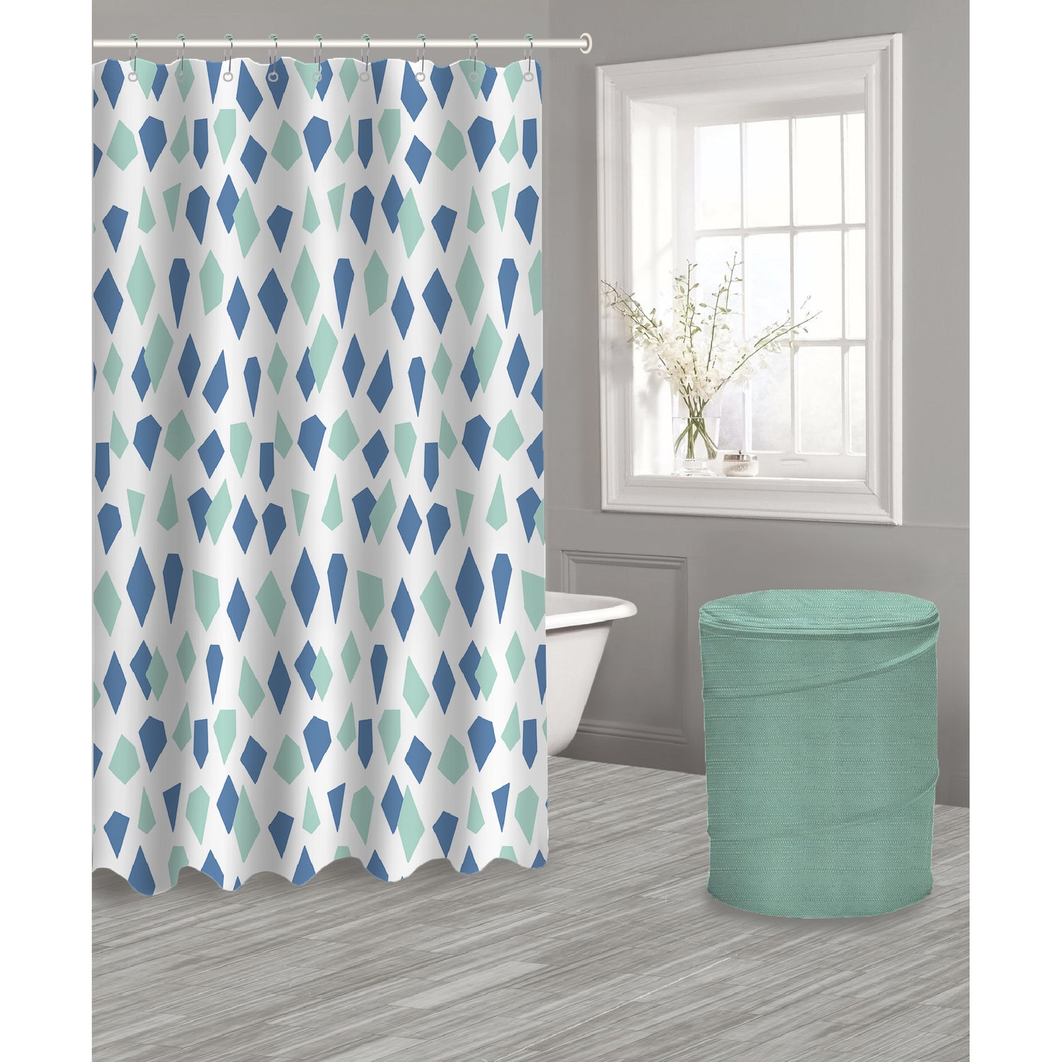 14 Pc Hamper Peva S. Curtain 12 R Hooks Diamond Bath Accessories
