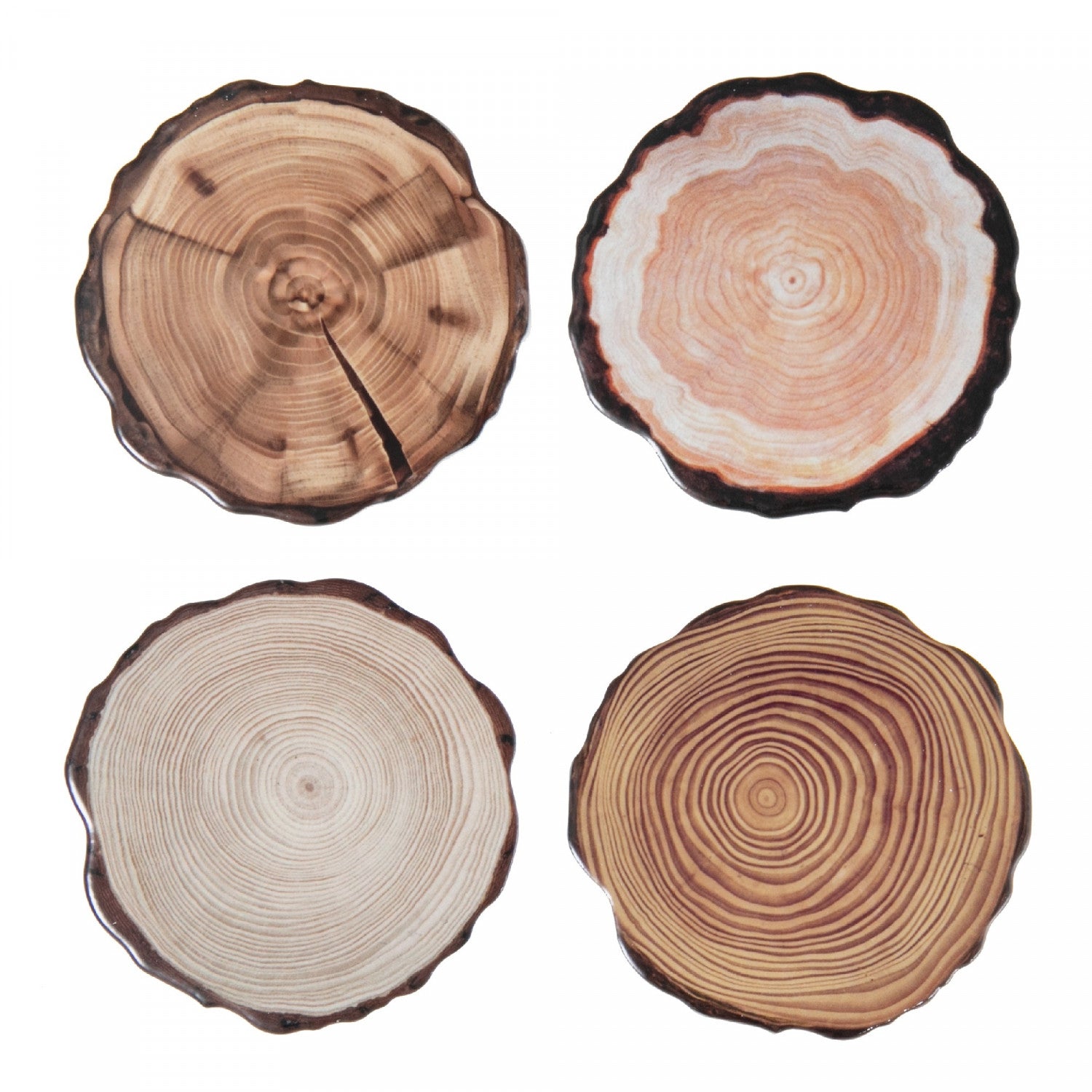 Create a strong barrier between a hot drink and a table with these durable round coasters. Made of high-quality ceramic, the coasters quickly absorb water and protect the table from spills and damage. They have assorted wooden log prints that give a nice vibe to the dining area and complement both modern and vintage decors. The brown ceramic coasters have a rustic finish and come in a complete set of 6. Design: Wooden log Material: High-quality ceramic Dimensions: 4.25 L × 4.25 W × 0.25 H Use: Serve hot drinks Care Tip: Wipe with cleaner spray and dry cloth