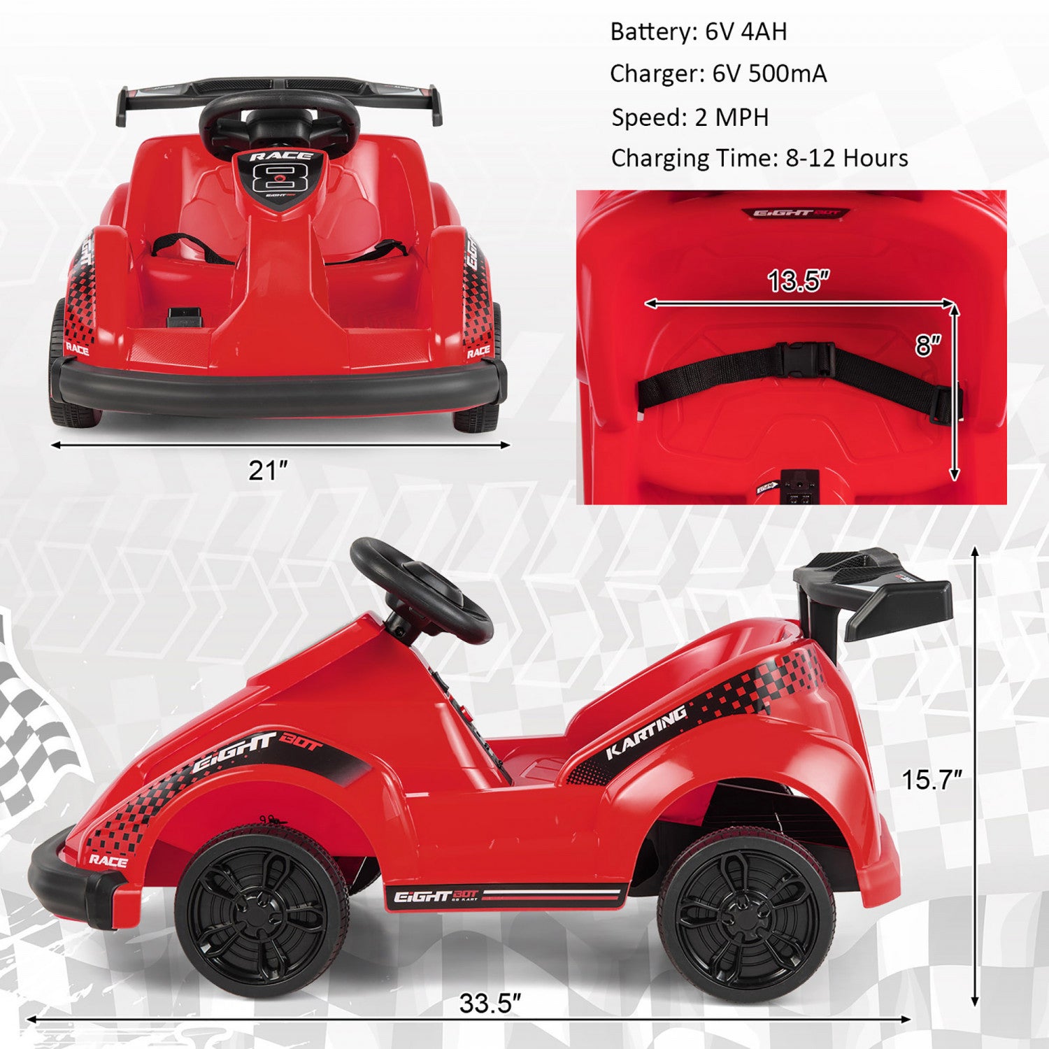 6v Battery Powered Go Kart Kids Ride On 4 Wheel Racer Rc W/ Bumper & Music Red