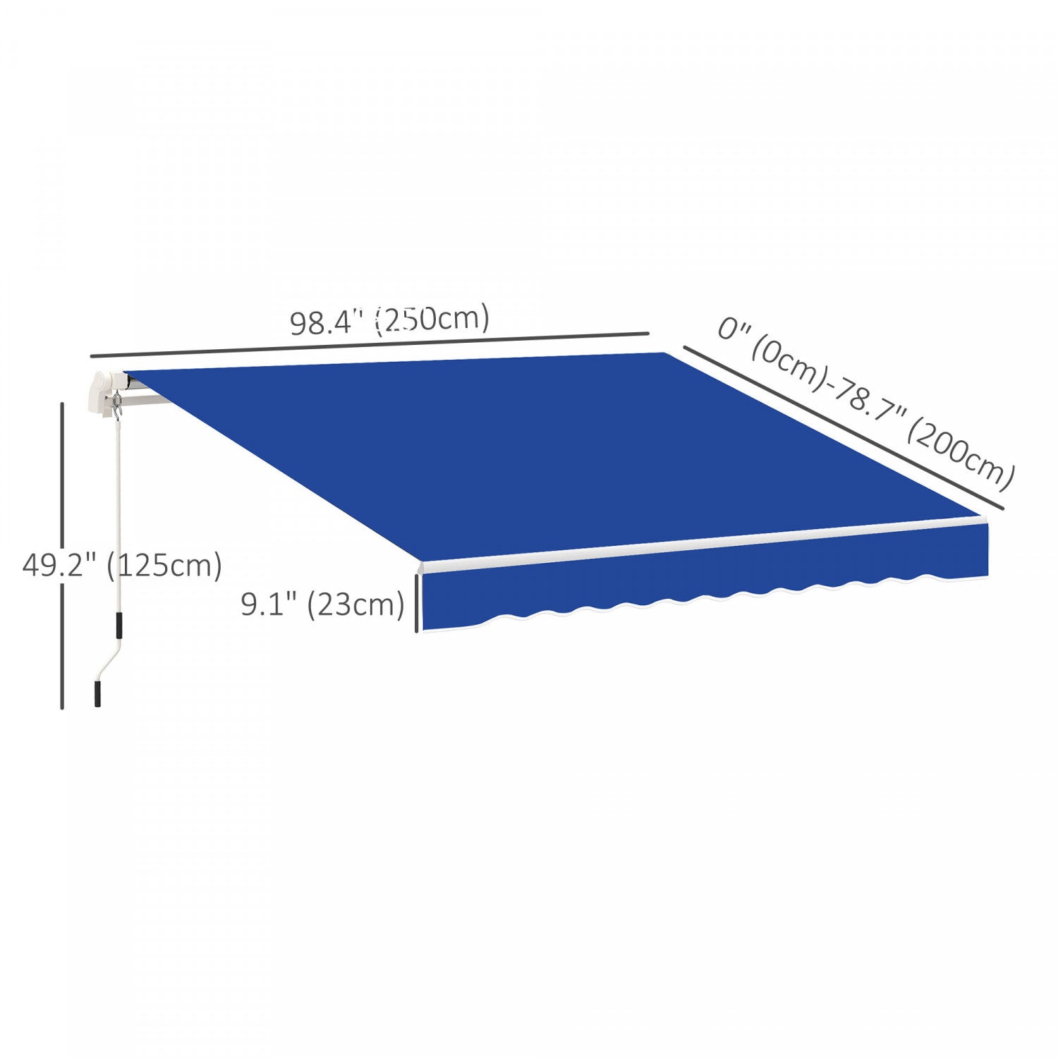 8'x7' Manual Retractable Sun Shade Patio Awning Canopy Shelter, Blue