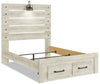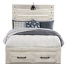 Shine some light on bedtime relaxation with this Abby full storage bed. Rustic and industrial styles collide in natural-looking wood with a light white finish and dark metal nailheads. An LED-powered sconce light built into the headboard provides some extra illumination for when you want to stay up late and read just one more chapter. A pair of USB ports means that you'll never have to worry about your phone dying in the middle of the night again. Two drawers built into the footboard give you extra space for clothing or blankets. Curl up on the Abby tonight, and let some light into your dreams.
