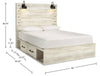 Shine some light on bedtime relaxation with this Abby queen side storage bed. Rustic and industrial styles collide in natural-looking wood with a light white finish and dark metal nailheads. Two LED-powered sconce lights in the headboard provide some extra illumination for when you want to stay up late and read just one more chapter. A pair of USB ports on the side means you'll never have to worry about your phone dying in the middle of the night again. Each side has two built-in drawers let you keep everything you need right at hand. Curl up on the Abby tonight, and let some light into your dreams.