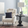 This circular accent table features a stepped base and turned pedestal that come together to create a timeless and sophisticated piece. Measuring at 26”w x 26”d x 26”h, it is a bit oversized and ideal for placement next to a couch or set of chairs in your living room, as an extra surface in your bathroom, or as additional table space wherever you like to entertain. The jet black painted finish pops against a variety of colour schemes but can also offer a blending effect when paired with the right accents. Simple assembly is required upon arrival.