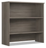 Create a stunning focal point and increase the storage capabilities of your workspace with this Affirm 36" x 36" bookcase hutch. Nestled on the desktop, hutches add just the right amount of functionality to an office without taking up too much room. Keep those stacks of folders organized and decor items on display thanks to convenient two-shelf storage. Finished in a neutral grey, combine this office hutch with the compatible Affirm cabinets (AFFT1FIL, AFFG1FIL) for a stylish, first-rate workspace.
