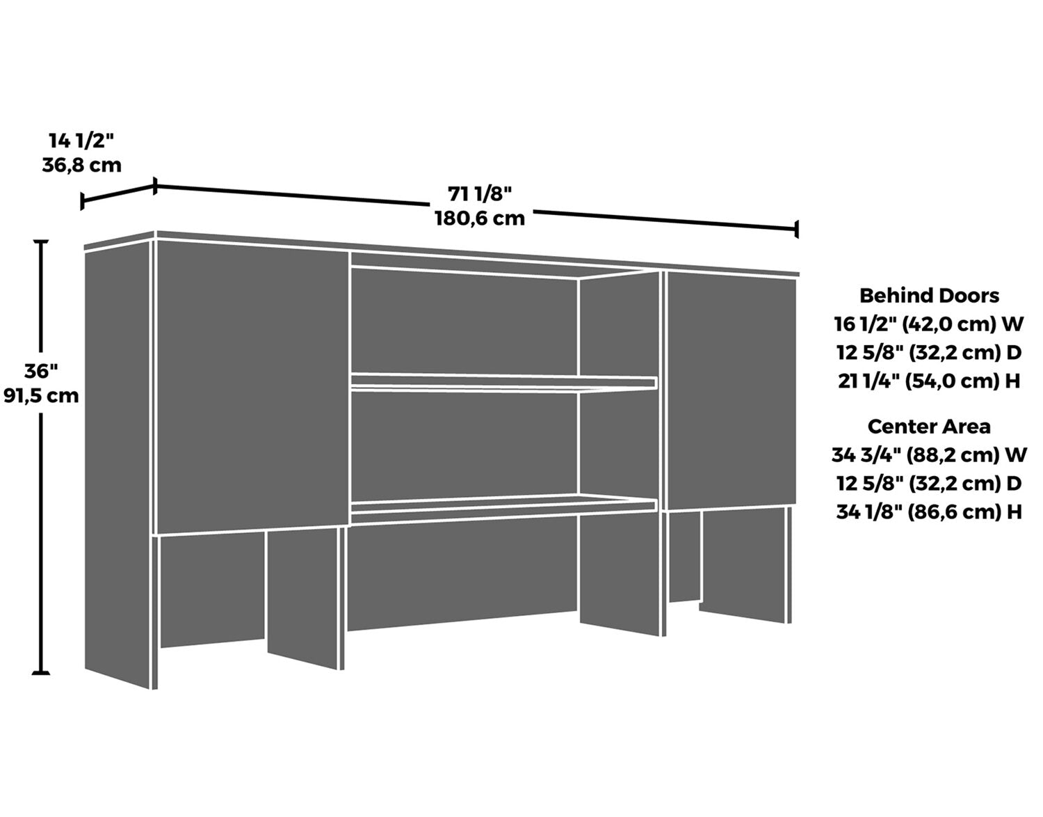 Width: 71.10" (180.6 cm) Height: 36.02" (91.5 cm) Depth: 14.49" (36.8 cm)