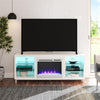 Step away from the ordinary and give your living room a modern makeover with the Ameriwood Home Lumina TV Stand with Electric Fireplace. Ready to warm up a 400 square foot room with the touch of a button, you can relax knowing that timers will take care of the rest. If you want to simply enjoy the look of the flames without the heat, use the included remote to switch off the heat option and pick your flame brightness. The fun doesn't stop there though. On either side of the fireplace insert are three shelves, two tempered glass, that hold your entertainment components like gaming systems, remotes, and more. Both side shelves can be illuminated with blue lights to complement the glowing fireplace heater. This fireplace entertainment center is constructed from engineered wood with metal feet and tempered glass shelving.
