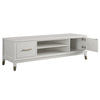 The CosmoLiving by Cosmopolitan Westerleigh TV Stand is a stylish pedestal for the focal point of the room. Available in crisp white or graphite grey, the Westerleigh is accented by trendy gold hardware with two doors and a fixed center shelf to store your top-notch equipment. This sturdy wooden stand holds TVs as heavy as 120 lbs. and up to 65" wide. Skip the electrical clutter and kick back after working nine to wine.