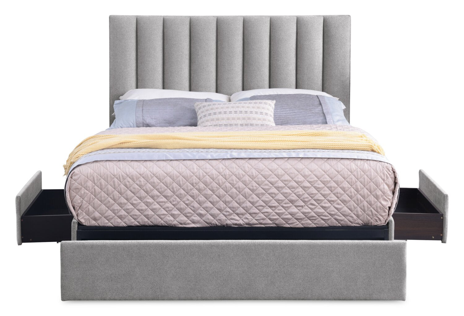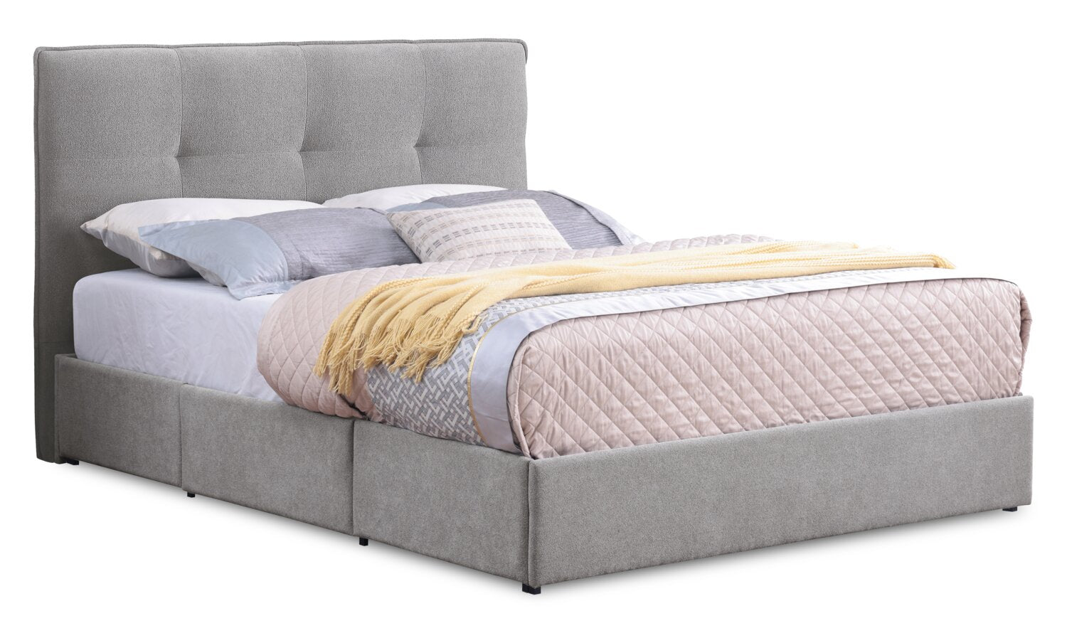 Amos Upholstered Storage Bed Base in Grey Fabric with 3 Built-in Drawers  - King Size