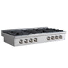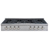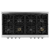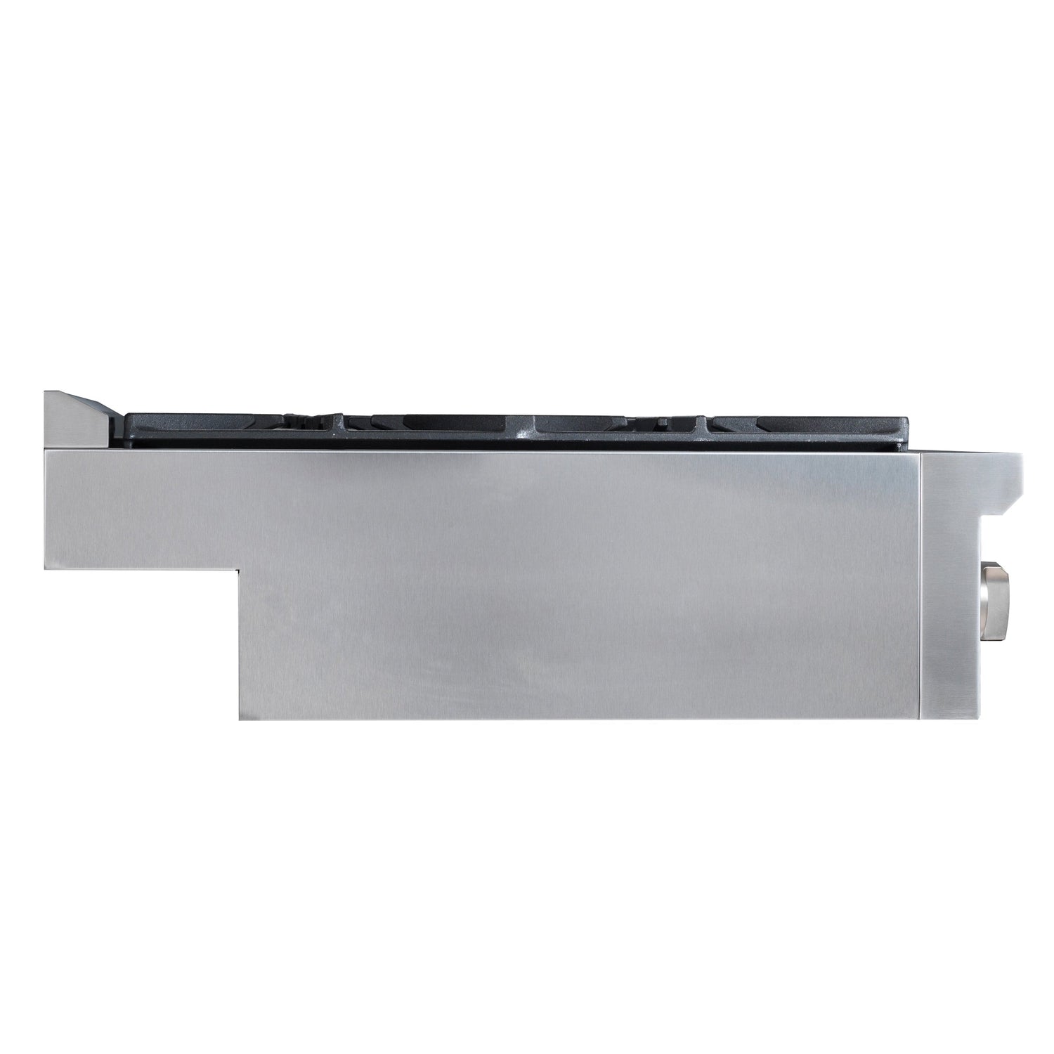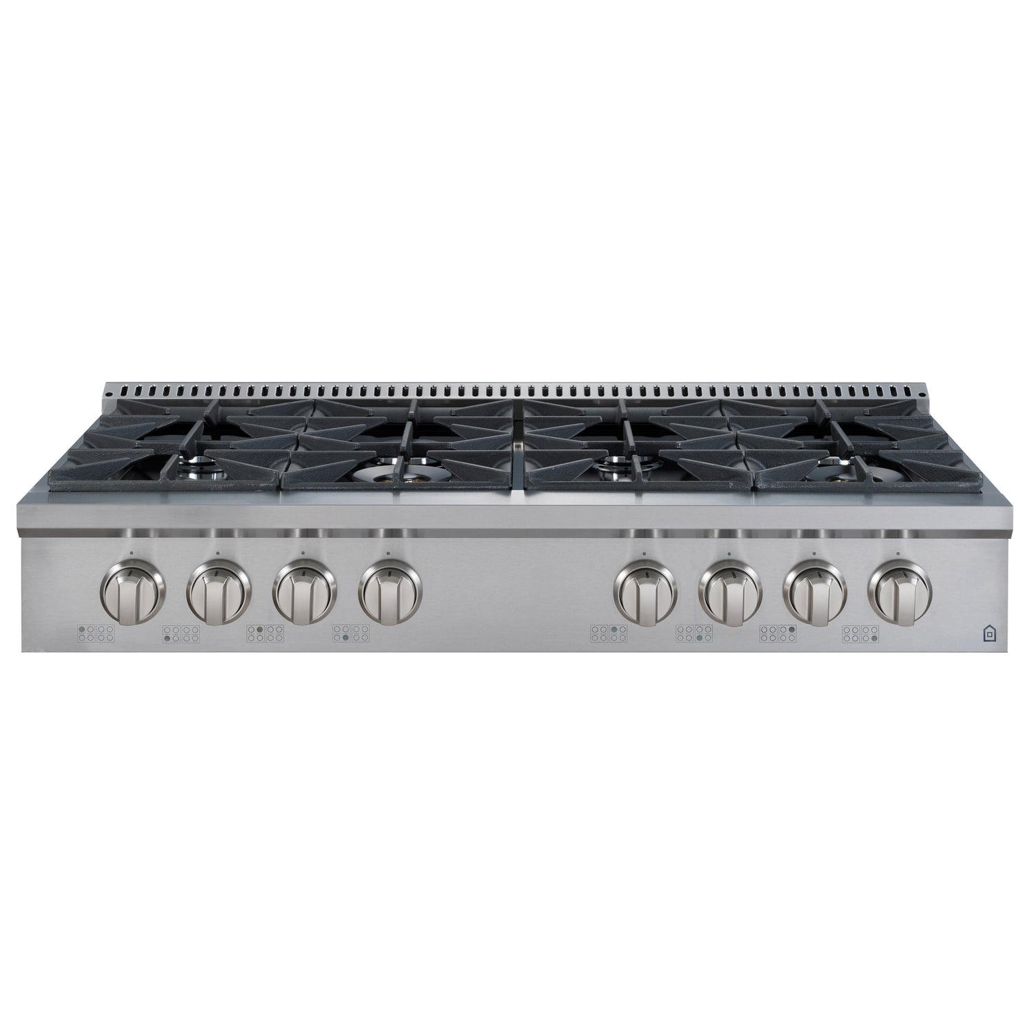 This expertly engineered 48-inch gas range top features solid cast iron grates, bold front control knobs and a design that will give your kitchen a professional look. Eight Italian-made DEFENDI burners allow you to cook from a high heat for boiling, frying, or searing to a low simmer for the most delicate sauces. The removable griddle/grill is perfect for preparing large meals.