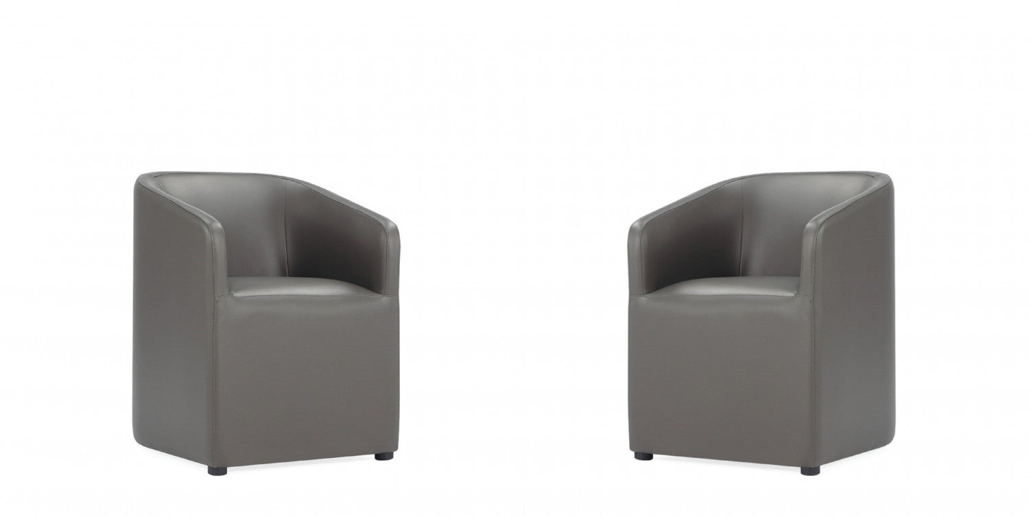 Anna Round Modern Vegan Leather Armchair in Graphite - Set of 2