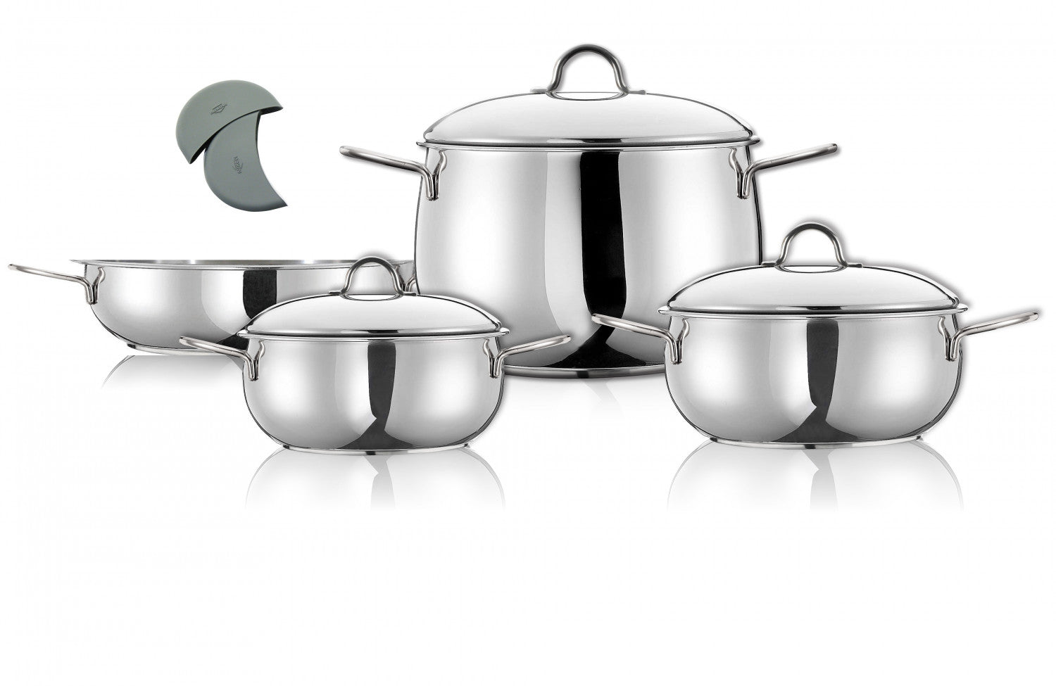 Fully designed and made in italy, arimi stainless steel cookware set combines elegance, superior quality, and convenience across essential pieces needed in every kitchen. The thick triple-layer bottom ensures ultimate durability while optimizing heat distribution. The hand-crafted mirror polished exterior with satin finish interior looks great in every kitchen. Ready for all stovetops including induction.