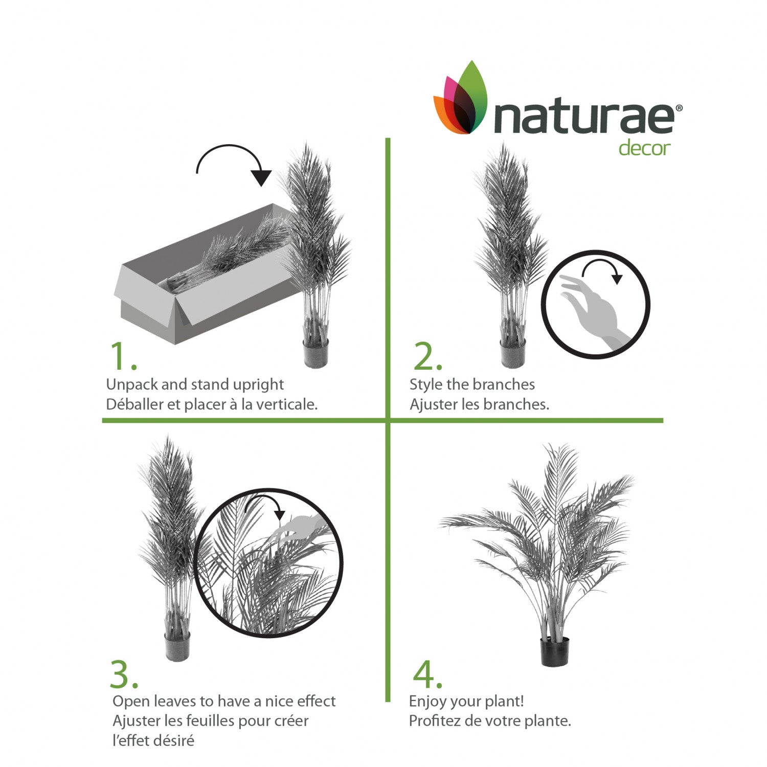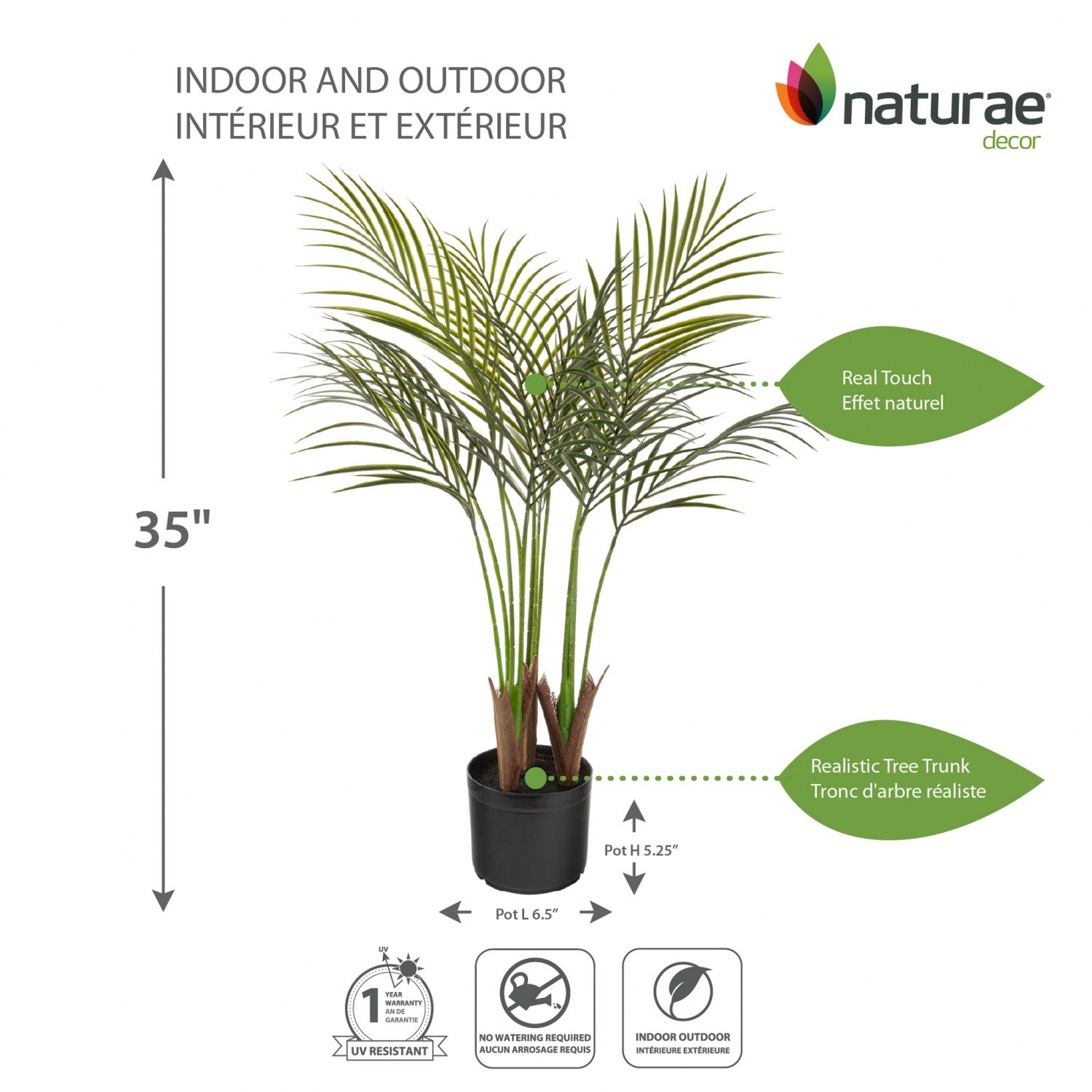 Bring home the realistic Naturae Decor areca palm plant to add some greenery in your decor. These realistic-looking plants will give off positive vibes wherever you place them. Colourful and modern, this plant comes in three sizes to best fit your space. Choose between 35 inches, 47 inches or 59 inches high. It is easy to create a warm and inviting home with these low maintenance realistic faux potted plants. Set in modern pots to fit any decor, our artificial plants are made of high-quality materials. They will remain beautiful for years to come, without even tarnishing. These faux plants will add a splash of colour and zest to any room.
