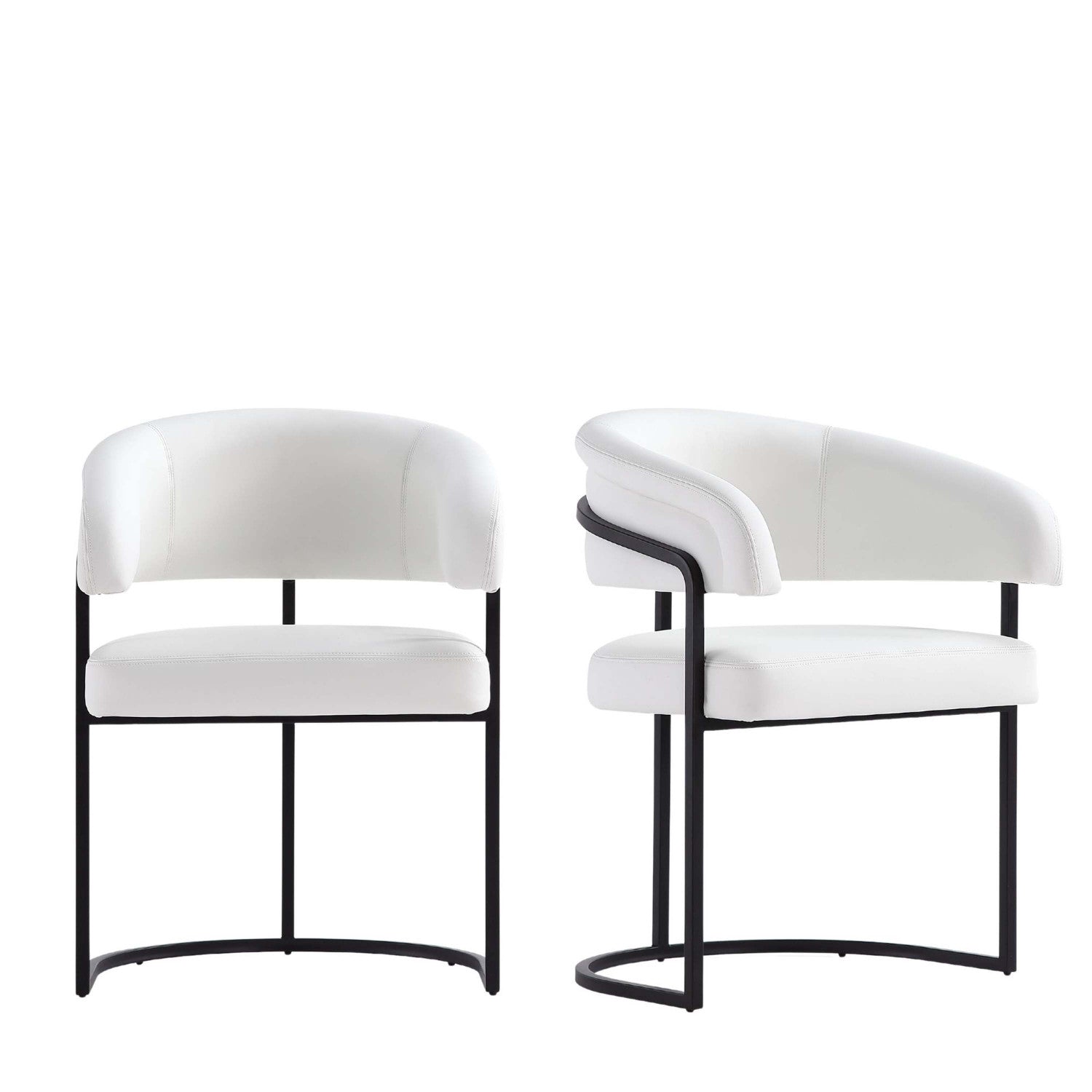 Augusta Modern Metal Vegan Leather Dining Chair in White - Set of 2
