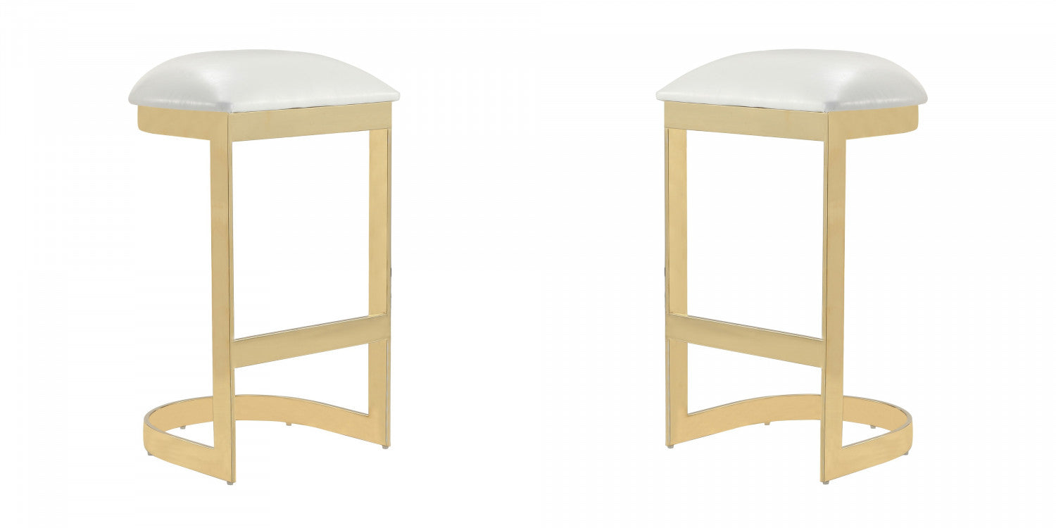 Aura Modern Metal Upholstered Barstool in White - Set of 2 Bar Stool