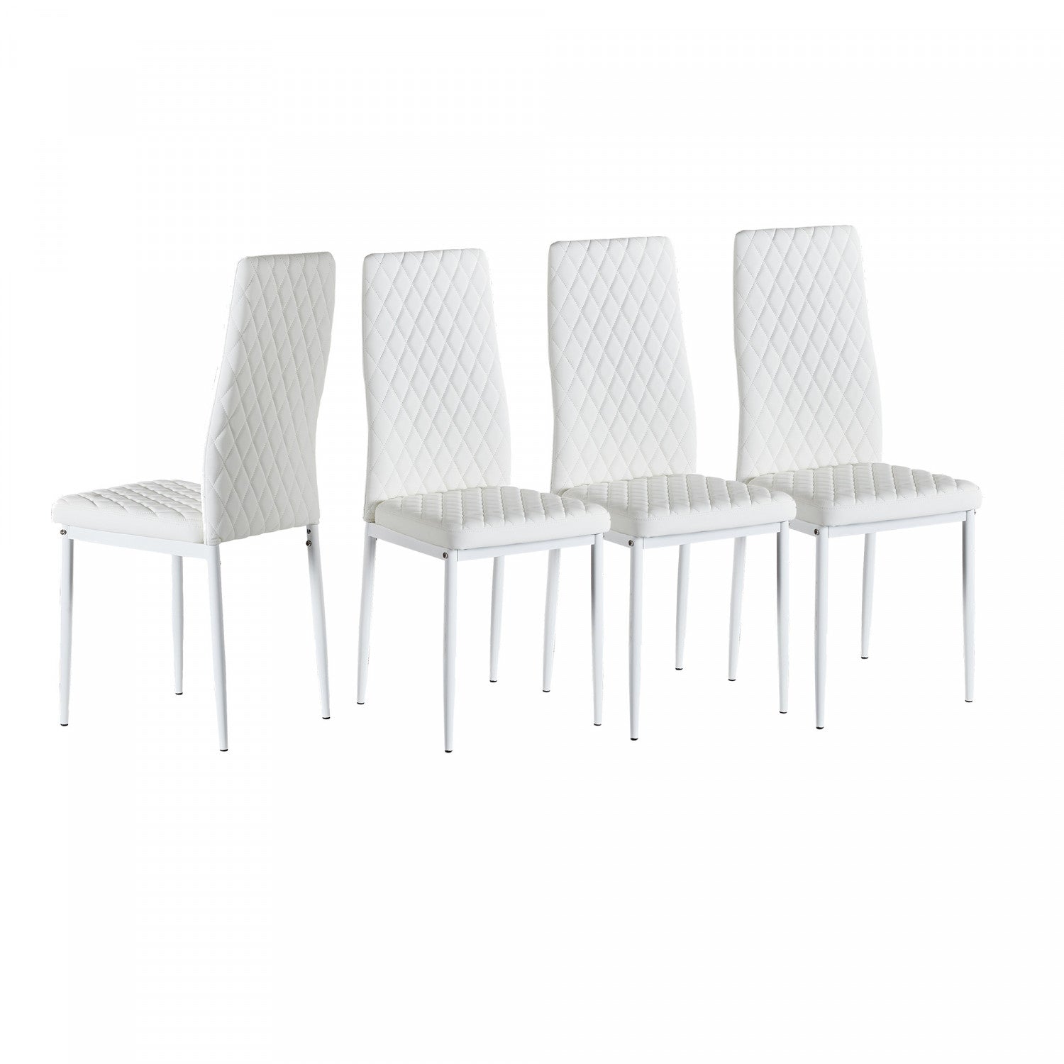 Ava Modern Diamond Grid Pattern Dining Chair Set (4-Pack) with Fireproof Leather and Metal Frame,White