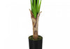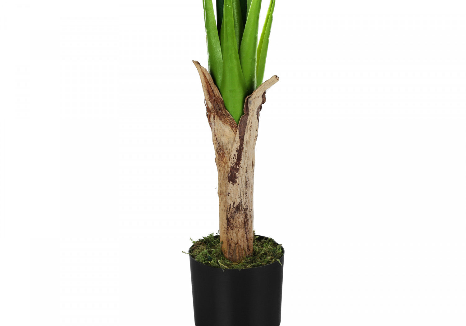 Forty-three-inch tall indoor artificial banana tree with 10 adjustable green leaves in a five-inch black pot. This artificial plant features a real-touch trunk composed of natural wood bark and bamboo topped with natural moss for a realistic look. This easy-care faux floor plant is made from the highest quality materials and requires no maintenance or watering for a sustainable, environmentally friendly decorative accent that will last a lifetime.