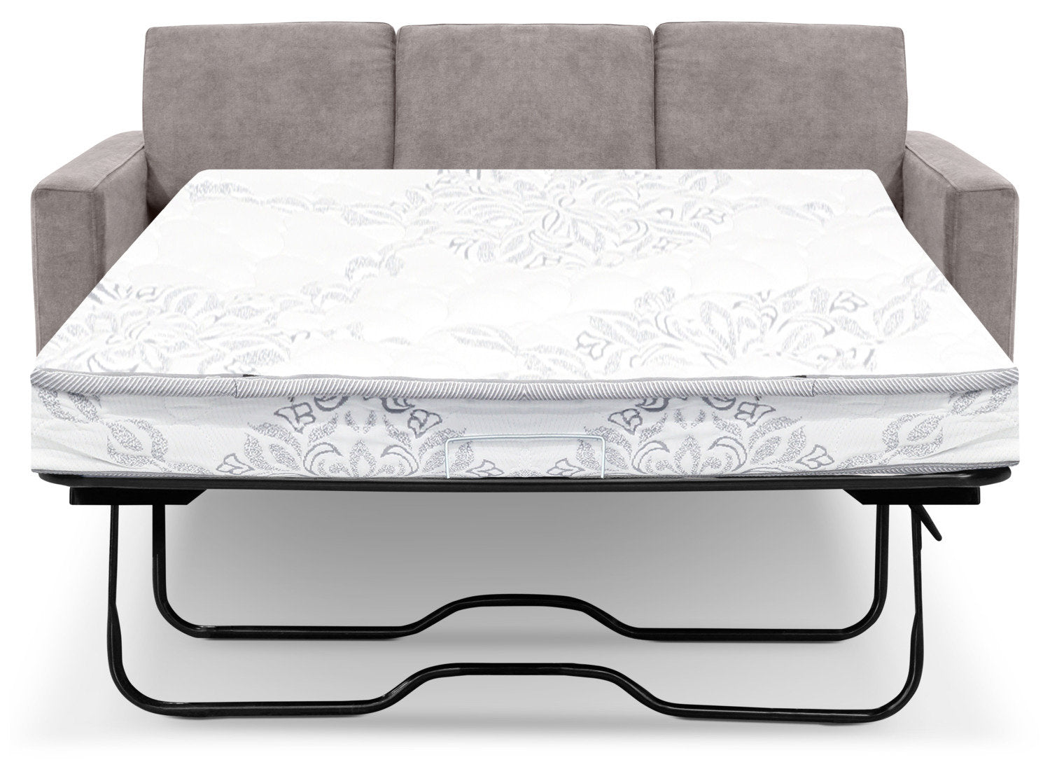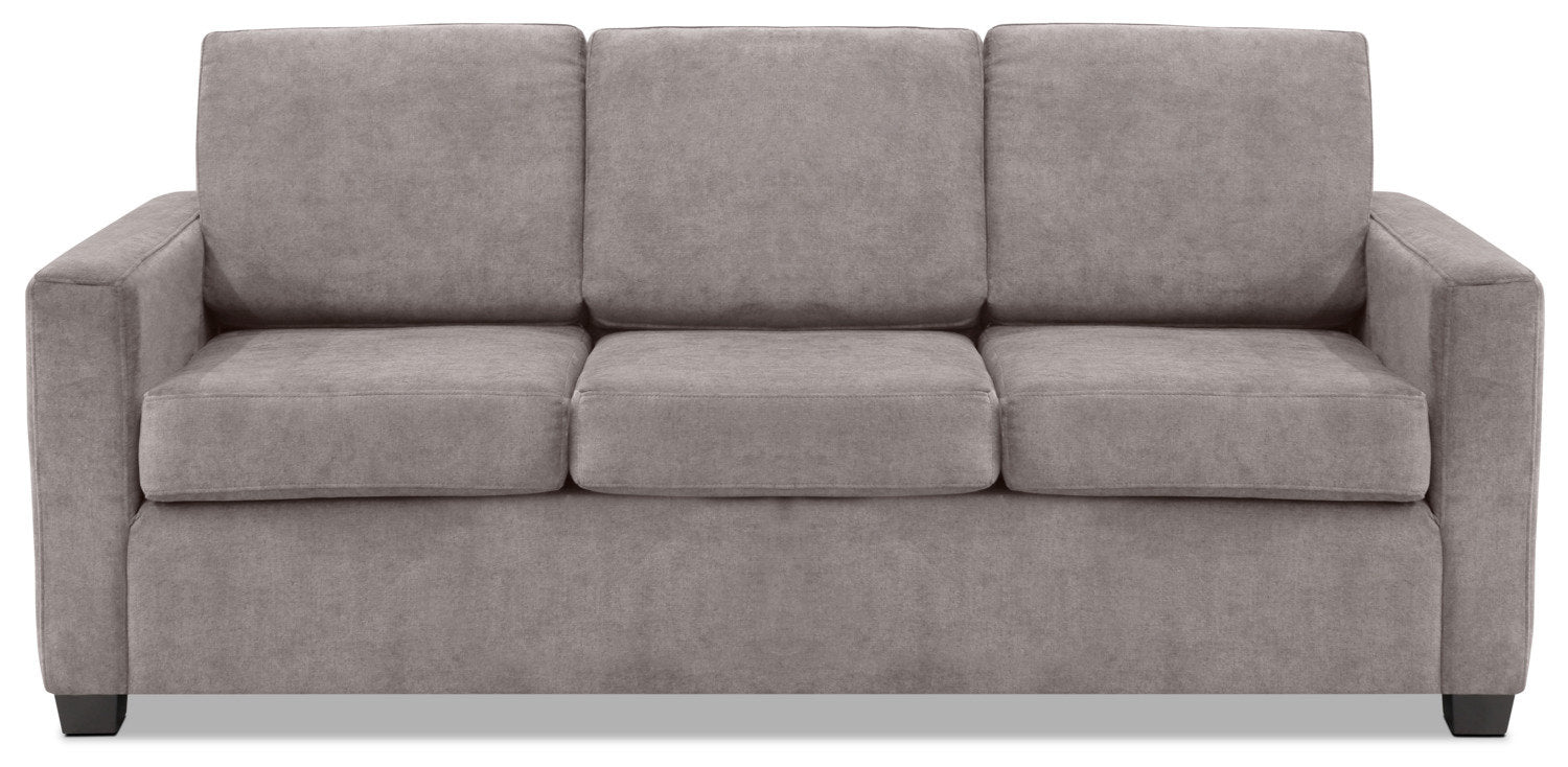 Create a cozy living space you'll enjoy by adding this Becca chenille sofa bed to your home. Soft, velvety, ash-coloured chenille covers this furniture piece from top to toe. Adding to the comfort of this couch is high-density foam stuffed inside the seat and back cushions. Contemporary design details, such as clean lines and wide track arms, only boost the chic vibes this piece brings to your space. With matching throw pillows and a pull-out bed, this charming sofa bed is ready to make your house a home.
