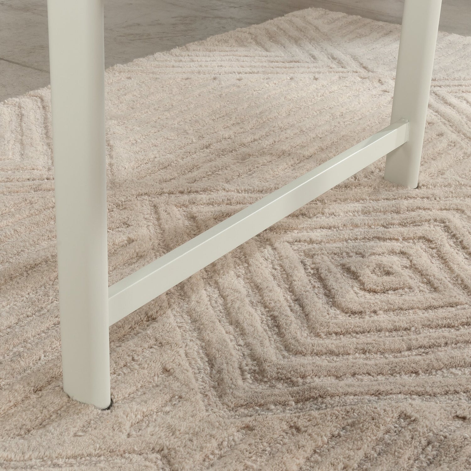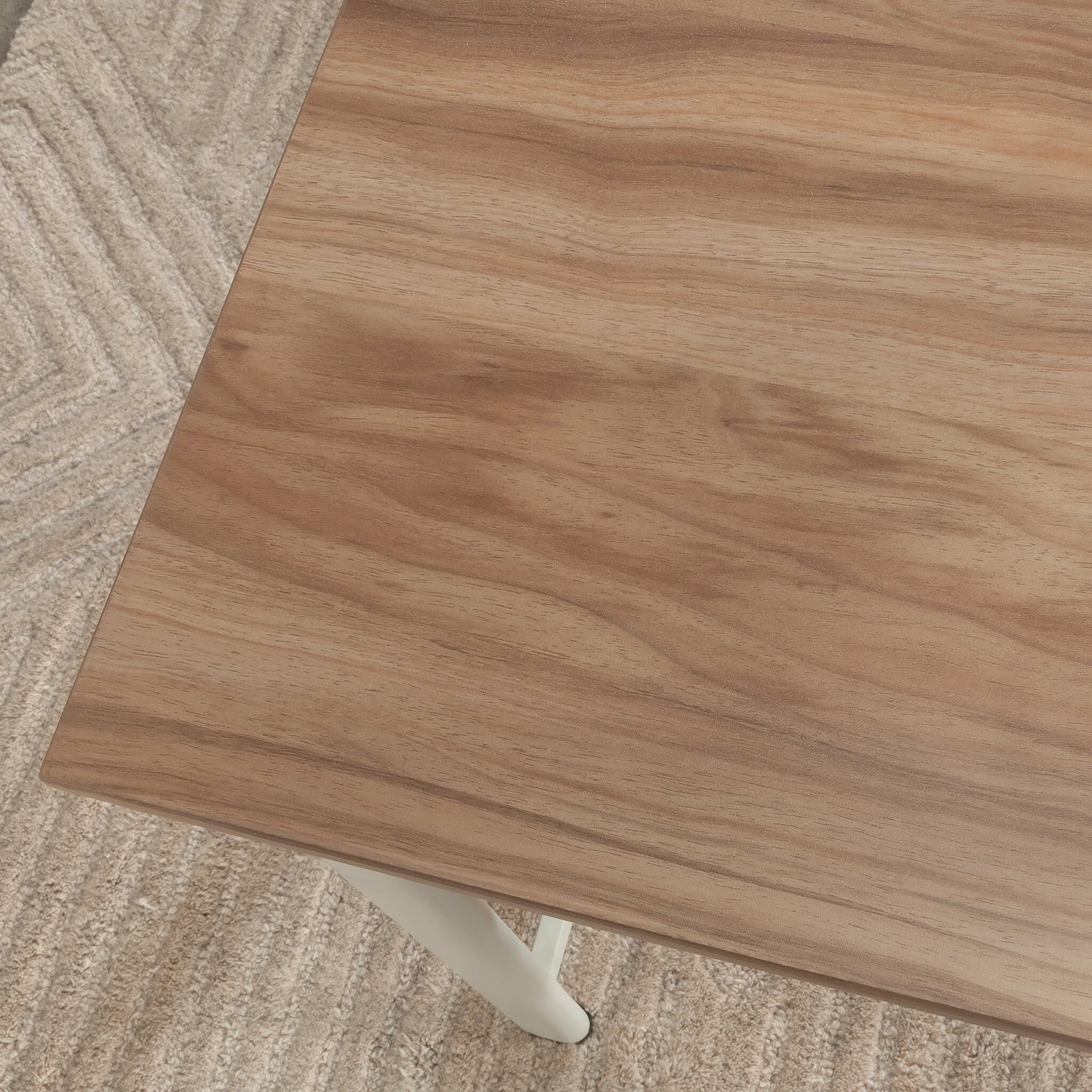 This Bergen Circle 72" x 30" table desk brings style and durability to your office. Whether you are checking off your to-do list or writing an important email, this workspace is designed to support you. Impact-resistant high-grade thermoplastic edges and a melamine top surface provide enhanced durability for a commercial office setting, while the desktop is heat-, stain- and scratch-resistant. With a stunning multi-tone finish and durable, powder-coated white metal legs, this desk will bring sophistication and enhanced design to your office.