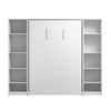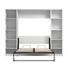 Blending affordability and style, the Bestar Claremont Full Murphy Bed with Closet Organizers (99W) is the perfect sleeping arrangement for any space. Dual pistons fold the Full Murphy bed down smoothly. The mattress support features flexible slats that absorb pressure for comfort. Wall bed accepts most full size mattresses. Take advantage of the closet organizers to store your items. The open bed extends 86.2 inches from the wall.