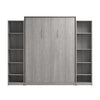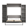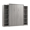 Blending affordability and style, the Bestar Claremont Queen Murphy Bed with Closet Organizers (105W) is the perfect sleeping arrangement for any space. Dual pistons fold the Queen Murphy bed down smoothly. The mattress support features flexible slats that absorb pressure for comfort. Wall bed accepts most queen size mattresses. Use the closet organizers to store clothes and linen. The open bed extends 91.2 inches from the wall.