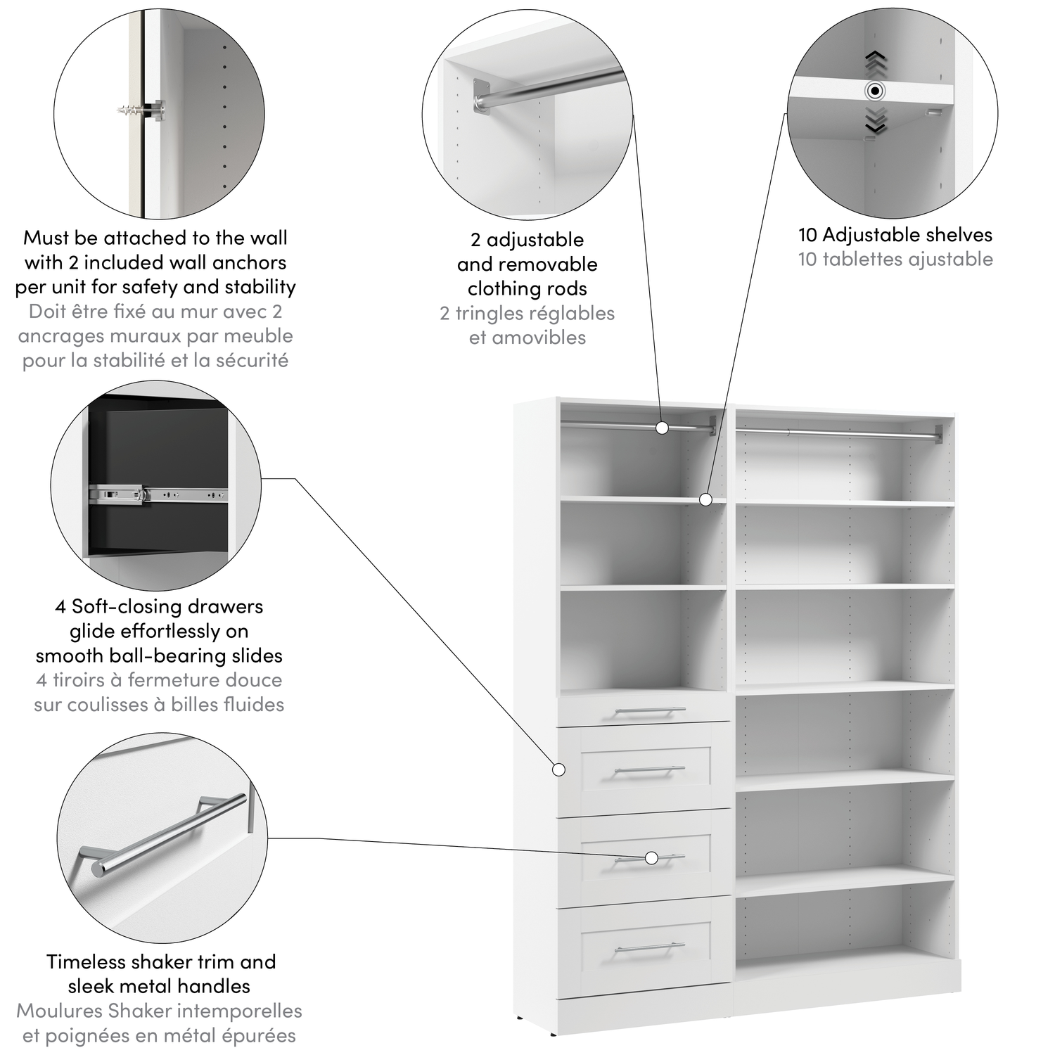 Bestar Florence 61" Modular Reach-In/Walk-In Closet System with Shelves and Drawers Shaker Style - White