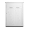 The Bestar Key West 63W Full Murphy Bed is the ideal space saver for a multipurpose room. The mattress support uses flexible slats that follow the curves of the body and absorb pressure. Unique X pattern accents paired with Antique Bronze hardware create a relaxed and airy style that works well with coastal and farmhouse decor. The Full Murphy bed can be used every night, and it folds up and down smoothly and quickly thanks to the dual piston system. Choose your own mattress since the bed accommodates most standard Full mattresses (8-10 inches thick, 60-90 lb, 54 x 75 inches) and supports up to 1000 lb (including mattress). The open bed extends 88.2 inches from the wall. Allow a clearance of 30-36 inches around the open bed. The dual-mount wall bed mechanism attaches to the floor and wall for ease of assembly and maximum stability and durability. To avoid risk of injury, the Murphy bed must be installed to wall and floor structure by a professional or qualified person. Two people are required for assembly. Installation requires attachment to wood studs or masonry, removal of the baseboard, and drilling into the floor (if disassembly is required, holes may be covered with baseboards 0.5 inches or thicker). All necessary hardware is included. The cabinet must be anchored to a wall with a minimum ceiling height of 87 inches. Do not use this product for children or pets under 50 pounds (22.7 kg). The Murphy Bed is backed by the Bestar 10 Year Manufacturer’s Warranty.
