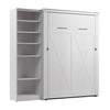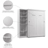 The Bestar Key West Full Murphy Bed with Closet Organizer (88W) is the ideal space saver for a multipurpose room. Unique X pattern accents paired with Antique Bronze hardware create a relaxed and airy style that works well with coastal and farmhouse decor. The Full Murphy bed folds up and down smoothly and quickly thanks to the dual piston system. Choose your own mattress since the bed accommodates most standard Full mattresses (8-10 inches thick, 60-90 lb, 54 x 75 inches) and supports up to 1000 lb (including mattress). The open bed extends 88.2 inches from the wall. Allow a clearance of 30-36 inches around the open bed. The dual-mount wall bed mechanism attaches to the floor and wall for ease of assembly and maximum stability and durability. Take advantage of the tall cabinet’s fixed and adjustable shelves to organize items of various sizes. To avoid risk of injury, the Murphy bed must be installed to wall and floor structure by a professional or qualified person. Two people are required for assembly. Installation requires attachment to wood studs or masonry, removal of the baseboard, and drilling into the floor (if disassembly is required, holes may be covered with baseboards 0.5 inches or thicker). All necessary hardware is included. The cabinet must be anchored to a wall with a minimum ceiling height of 87 inches. Do not use this product for children or pets under 50 pounds (22.7 kg). The Murphy Bed is backed by the Bestar 10 Year Manufacturer’s Warranty.