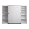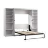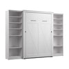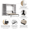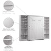 The Bestar Key West Full Murphy Bed with Closet Organizers (113W) is the ideal space saver for a multipurpose room. Unique X pattern accents paired with Antique Bronze hardware create a relaxed and airy style that works well with coastal and farmhouse decor. The Full Murphy bed folds up and down smoothly and quickly thanks to the dual piston system. Choose your own mattress since the bed accommodates most standard Full mattresses (8-10 inches thick, 60-90 lb, 54 x 75 inches) and supports up to 1000 lb (including mattress). The open bed extends 88.2 inches from the wall. Allow a clearance of 30-36 inches around the open bed. The dual-mount wall bed mechanism attaches to the floor and wall for ease of assembly and maximum stability and durability. Take advantage of the tall cabinets’ fixed and adjustable shelves to organize items of various sizes. To avoid risk of injury, the Murphy bed must be installed to wall and floor structure by a professional or qualified person. Two people are required for assembly. Installation requires attachment to wood studs or masonry, removal of the baseboard, and drilling into the floor (if disassembly is required, holes may be covered with baseboards 0.5 inches or thicker). All necessary hardware is included. The cabinet must be anchored to a wall with a minimum ceiling height of 87 inches. Do not use this product for children or pets under 50 pounds (22.7 kg). The Murphy Bed is backed by the Bestar 10 Year Manufacturer’s Warranty.