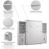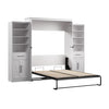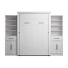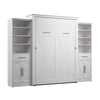 The Bestar Key West Queen Murphy Bed and Closet Organizers with Doors and Drawers (119W) is the ideal space saver for a multipurpose room. Unique X pattern accents paired with Antique Bronze hardware create a relaxed and airy style that works well with coastal and farmhouse decor. The Queen Murphy bed folds up and down smoothly thanks to the dual piston system. Choose your own mattress since the bed accommodates most standard Queen mattresses (8-12 inches thick, 60-90 lb, 60 x 80 inches) and supports up to 1000 lb (including mattress). The open bed extends 92.9 inches from the wall. Allow a clearance of 30-36 inches around the open bed. The dual-mount wall bed mechanism attaches to the floor and wall for ease of assembly and maximum stability and durability. Each tall cabinet features 2 fixed and 4 adjustable shelves as well as 1 drawer and 2 doors. To avoid risk of injury, the Murphy bed must be installed to wall and floor structure by a professional or qualified person. Two people are required for assembly. Installation requires attachment to wood studs or masonry, removal of the baseboard, and drilling into the floor (if disassembly is required, holes may be covered with baseboards 0.5 inches or thicker). All necessary hardware is included. The cabinet must be anchored to a wall with a minimum ceiling height of 92.1 inches. Do not use this product for children or pets under 50 pounds (22.7 kg). The Murphy Bed is backed by the Bestar 10 Year Manufacturer’s Warranty.