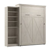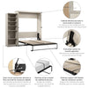 The Bestar Key West Queen Murphy Bed with Closet Organizer (94W) is the ideal space saver for a multipurpose room. Unique X pattern accents paired with Antique Bronze hardware create a relaxed and airy style that works well with coastal and farmhouse decor. The Queen Murphy bed folds up and down smoothly and quickly thanks to the dual piston system. Choose your own mattress since the bed accommodates most standard Queen mattresses (8-12 inches thick, 60-90 lb, 60 x 80 inches) and supports up to 1000 lb (including mattress). The open bed extends 92.9 inches from the wall. Allow a clearance of 30-36 inches around the open bed. The dual-mount wall bed mechanism attaches to the floor and wall for ease of assembly and maximum stability and durability. Take advantage of the tall cabinet’s fixed and adjustable shelves to organize items of various sizes. To avoid risk of injury, the Murphy bed must be installed to wall and floor structure by a professional or qualified person. Two people are required for assembly. Installation requires attachment to wood studs or masonry, removal of the baseboard, and drilling into the floor (if disassembly is required, holes may be covered with baseboards 0.5 inches or thicker). All necessary hardware is included. The cabinet must be anchored to a wall with a minimum ceiling height of 92.1 inches. Do not use this product for children or pets under 50 pounds (22.7 kg). The Murphy Bed is backed by the Bestar 10 Year Manufacturer’s Warranty.
