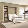 The Bestar Pur Full Murphy Bed with Shelving Unit (84W) is the ideal space saver for a multipurpose room. The mattress support uses flexible slats that follow the curves of the body and absorb pressure for maximum comfort. The Full Murphy bed can be used every night for a good night’s sleep. The bed folds up and down smoothly within seconds thanks to the dual piston system. The wall bed accommodates most standard Full mattresses (8-10 inches thick, 60-90 lb, 54 x 75 inches) and supports up to 1000 lb (including mattress). The open bed extends 84. 9 inches from the wall. The cabinet must be anchored to a wall with a minimum ceiling height of 86. 4 inches. Allow a clearance of 30-36 inches around the open bed. The complementary shelving unit comes with 2 fixed and 3 adjustable shelves to hold your belongings. The dual-mount wall bed mechanism attaches to the floor and wall for maximum stability and durability. To avoid risk of injury, the bed must be installed to wall and floor structure by a professional or qualified person. Two people are required for assembly. Installation requires attachment to wood studs or masonry, removal of the baseboard, and drilling into the floor (if disassembly is required, holes may be covered with baseboards 0. 5 inches or thicker). All necessary hardware is included. Do not use this product for children or pets under 50 pounds (22. 7 kg). Backed by the Bestar 10 Year Manufacturer’s Warranty. North American made with globally sourced materials.