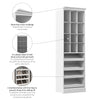 The Bestar Versatile 25W Closet Shoe Organizer is the perfect solution to keep your shoes and accessories organized with style. Thanks to its compact design, it fits easily into the room of your choice. Use this shoe organizer in your closet, bedroom, or entryway to keep everything you need to get ready in full view and close at hand. Get your home in order with twelve cubbies for easy access to hats, bags, gloves, and more. Four spacious slanted shelves feature front lips to prevent items from sliding off, making them a great location to display your large shoe collection, or even handbags or clothes. Designed for use as a standalone closet organizer or as part of a larger configuration when paired with coordinating items from the Versatile Collection (sold separately), this small closet organizer provides ample opportunities for keeping your home in order without overwhelming your floor space. This piece is an essential if you have a walk-in closet. It offers all the shoe storage you need. Attractive crown moldings beautifully complement the elegant finish of your choice. This shoe cabinet is backed by the Bestar 10 Year Manufacturer’s Warranty. North American made with globally sourced materials.