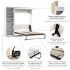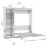 The Bestar Versatile Full Murphy Bed and Closet Organizer (84W) is the ideal space saver for a multipurpose room. The mattress support uses flexible slats that follow the curves of the body and absorb pressure for maximum comfort. The Full Murphy bed folds up and down smoothly thanks to the dual piston system. The wall bed can be used every night for a good night’s sleep. The bed accommodates most standard Full mattresses (8-10 inches thick, 60-90 lb, 54 x 75 inches) and supports up to 1000 lb (including mattress). The open bed extends 84. 9 inches from the wall. The cabinet must be anchored to a wall with a minimum ceiling height of 88. 8 inches. Allow a clearance of 30-36 inches around the open bed. Closet organizer comes with 2 fixed and 4 adjustable shelves to store your belongings. The dual-mount wall bed mechanism attaches to the floor and wall for maximum stability and durability. To avoid risk of injury, the Murphy bed must be installed to wall and floor structure by a professional or qualified person. Two people are required for assembly. Installation requires attachment to wood studs or masonry, removal of the baseboard, and drilling into the floor (if disassembly is required, holes may be covered with baseboards 0. 5 inches or thicker). All necessary hardware is included. Do not use this product for children or pets under 50 pounds (22. 7 kg). Backed by the Bestar 10 Year Manufacturer’s Warranty. North American made with globally sourced materials.