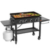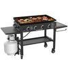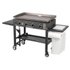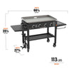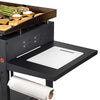 The Blackstone 36" Griddle Cooking Station with Accessory Side Shelf gives you the control you need to be an outdoor cooking pro. Four independently-controlled heat zones offer 60,000 BTUs of heat to give you all the power you need to serve an entire crowd with restaurant-quality steaks, or up to 28 burgers or 72 hot dogs! Enjoy all the benefits of a standard 36" griddle with the added convenience of a cutting board, garbage bag hanger, and paper towel holder, making prep and clean-up a cinch. Now fully equipped with the patented rear grease management system. Join the Griddle Nation and cook anything, anytime, anywhere with a Blackstone.
