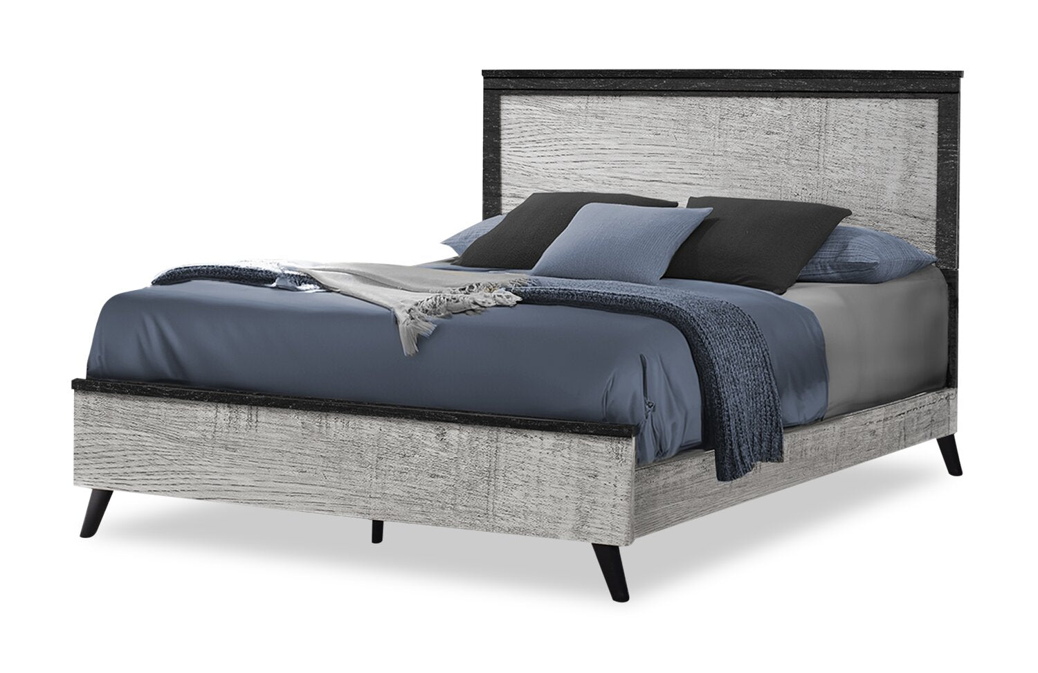 Blake 5pc Bedroom Set with Bed, Dresser & Mirror, Grey & Black - Queen Size
