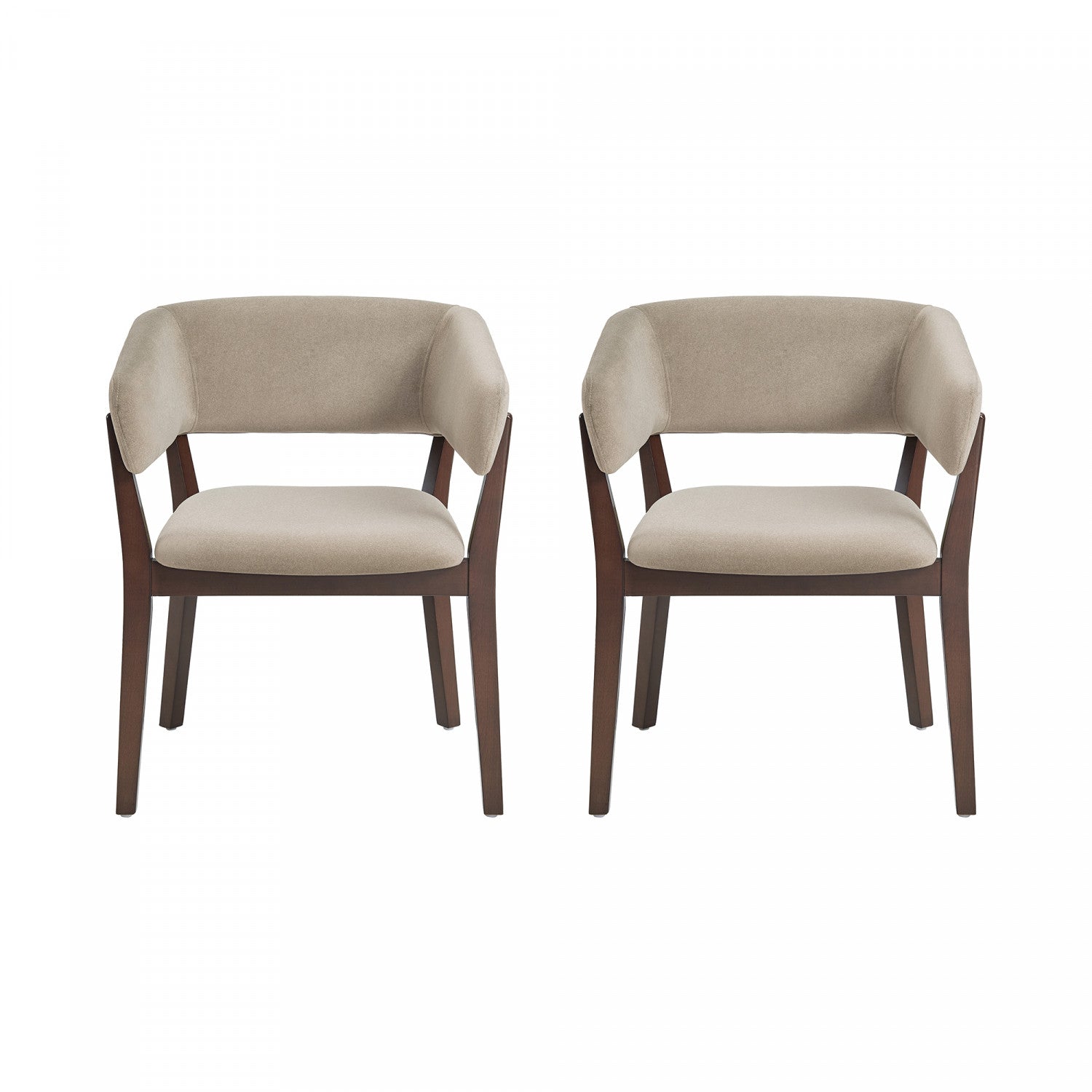 Blake Modern Faux Mohair Wood Armchair in Natural - Set of 2 Dining Chair