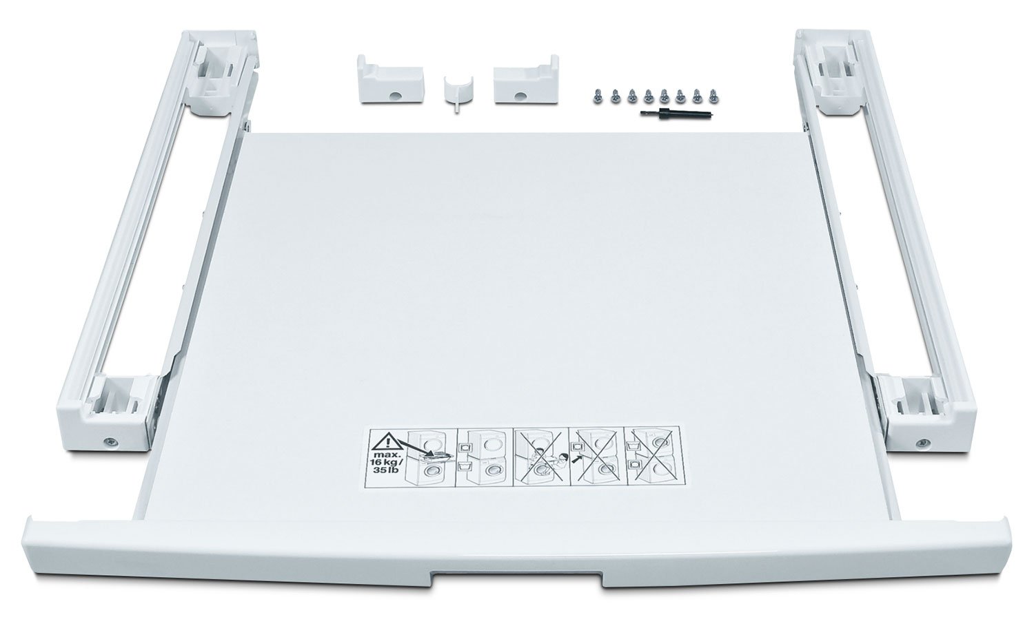 Space-Saving Solution: Pull-Out Shelf: Compatible with Bosch 24-inch Laundry Machines: Hardware Included: |