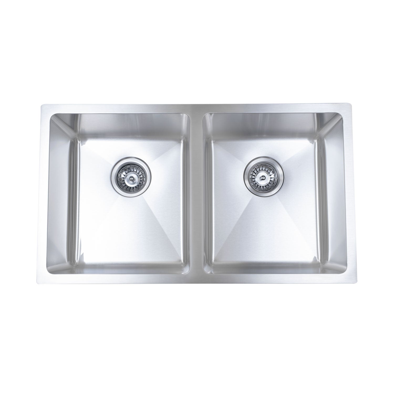 Bristol Sinks 16 Gauge under-mount stainless steel kitchen sink with 20 millimetres radius corners. This sink features a lustrous soft brushed satin finish and 20 mm radius curved corners designed for easy cleaning, making this double bowl sink easy to clean while reflecting the latest trends in the modern kitchen fashion. Scratch and stain-resistant, the commercial-grade premium satin brushed finish guarantees durability and lasting shine. Experience the quality of the Bristol Sinks 16 Gauge Stainless Steel Collection and bring your design ideas to life.