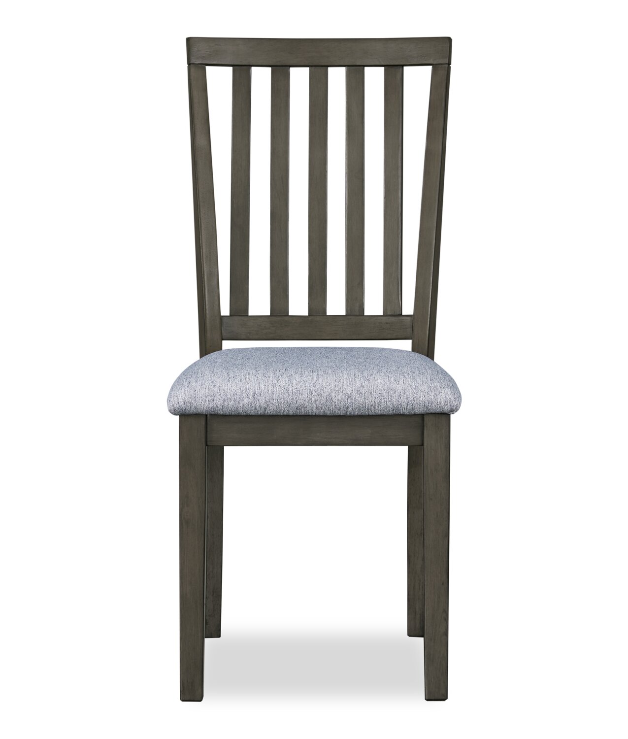 Tuck into a delicious meal with this Bryn dining chair. The light and dark grey hues of the upholstered foam cushion and solid wood frame complement each other well, giving this piece an air of maturity and sophistication. Sturdy and long-lasting support is provided by the solid wood structure of the legs and back, which ensures this piece will last against the usual wear and tear. Plus, a slat-back design offers additional back support as well as a subtle modern flair. Enjoy long conversations and experience fine dining with the Bryn.