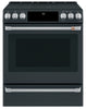 A sleek look in the kitchen is all yours with this 30-inch front control electric range by Café. With 5.7 cubic feet of cooking capacity and true convection, you can ensure all your meals come out cooked quickly and evenly. The smooth, continuous glass cooktop provides a stylish look, but it’s also easy to clean when messes happen. The radiant heating elements feature Power Boil, which allows your burner size to be tailored to fit an array of cookware sizes from 6 inches to 12 inches. Always stay in touch with your range using Wi-Fi Connect that gives you full control right from your smart phone.