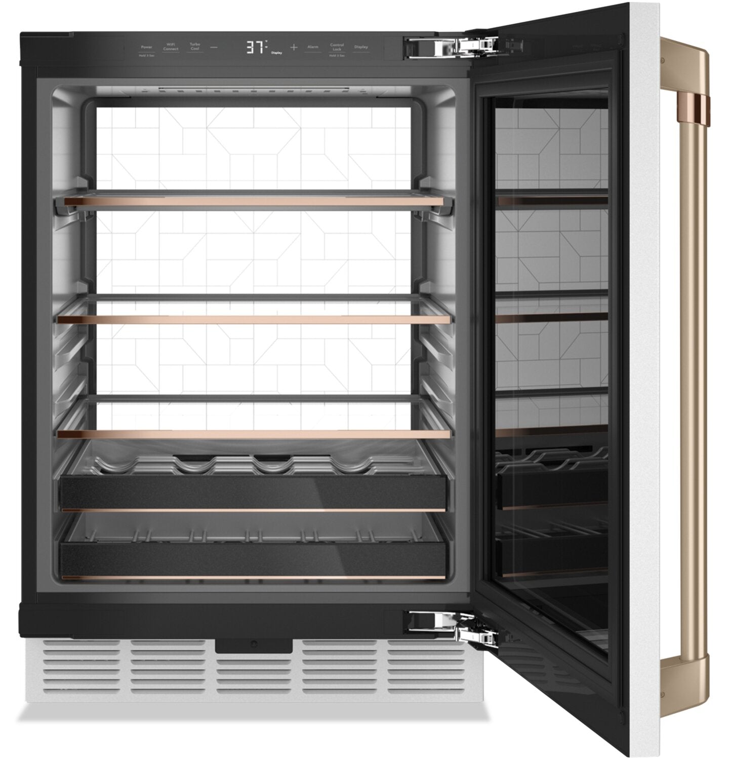 14-Bottle, 126-Can Capacity: LED Light Wall: Magnum Bottle Storage: Smart Technology: Quick Space Shelf: Flush Installation: Articulating Door Hinges: Triple Pane Glass Door: |