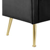 | Accent Details | Tapered, gold legs make a statement against the contrasting fabric. |