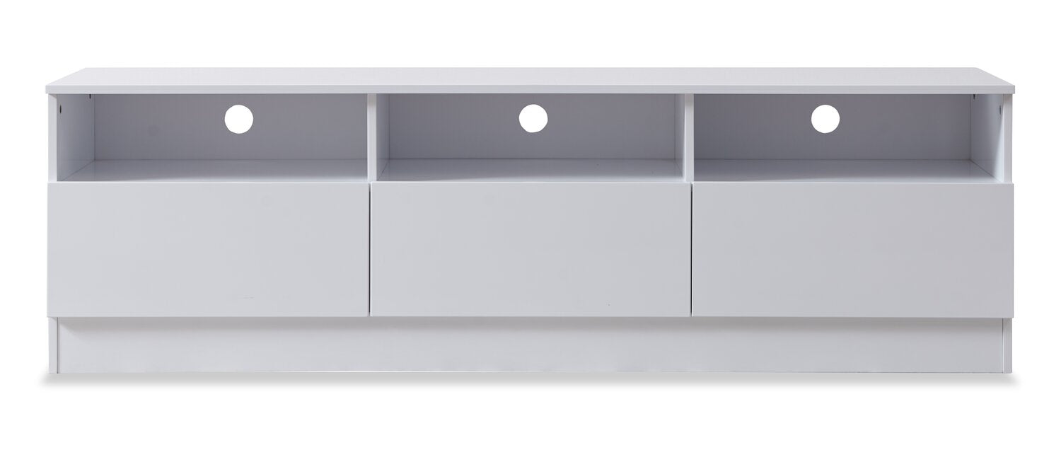 Create a clean and inviting focal point in your living room with the Celine four-piece entertainment centre. Finished in high glossy white, the contemporary design brightens your space and adds a smooth, modern feel. Open shelves and spacious drawers give you room to display decor, store media and keep everyday items neatly tucked away, while built-in cable management helps reduce clutter. Designed to support TVs up to 70 inches, the Celine entertainment centre brings together style, storage and simple comfort for everyday living.