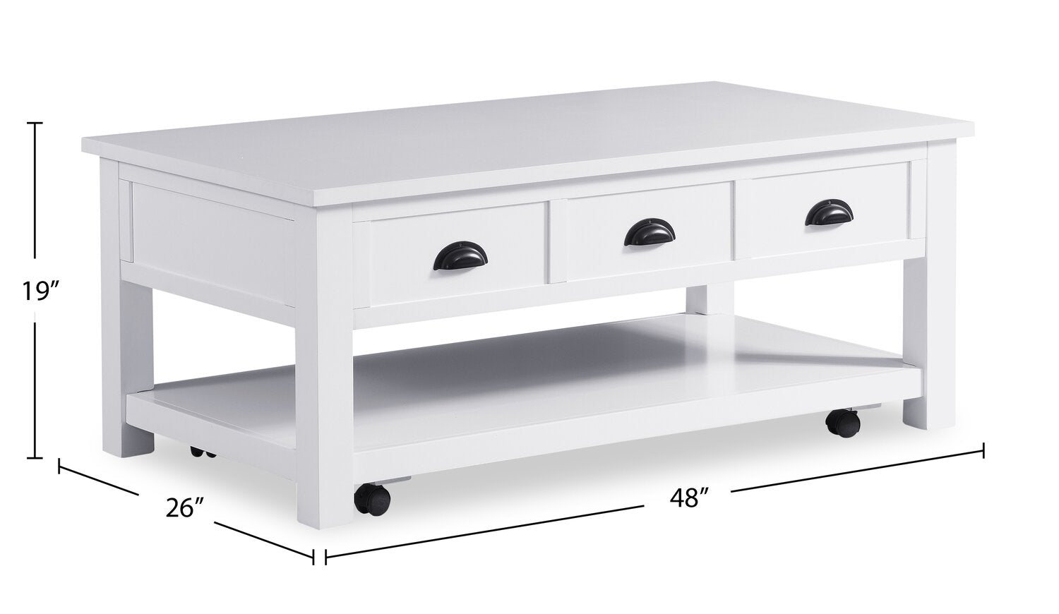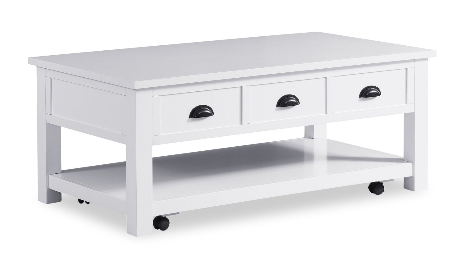 Centennial 48" Modern Lift Top Coffee Table with Storage, Shelf & Casters - White
