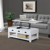 Centennial 48\" Modern Lift Top Coffee Table with Storage, Shelf & Casters - White