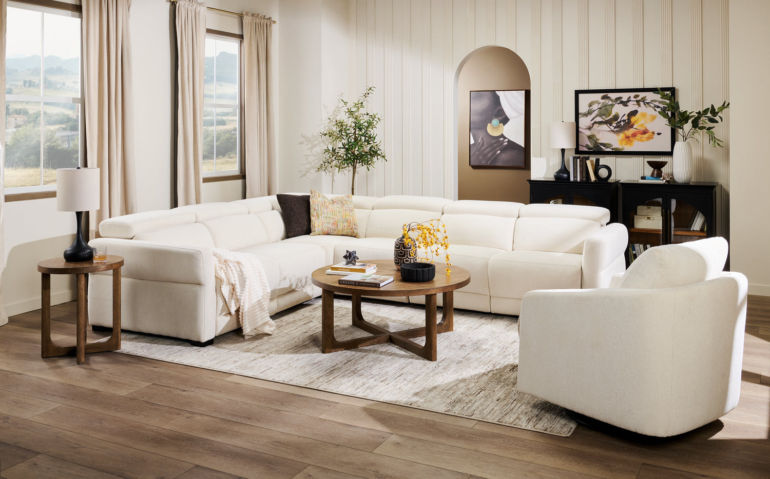 Cindy Crawford Home Aspen 4-Piece Power Reclining Sectional with Armless Chair and USB Port - Alabaster