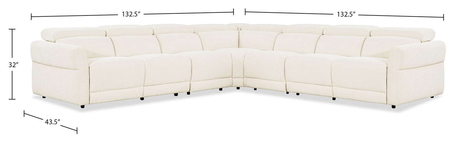 Cindy Crawford Home Aspen 5-Piece Power Reclining Sectional with Adjustable Headrests and USB Port - Alabaster