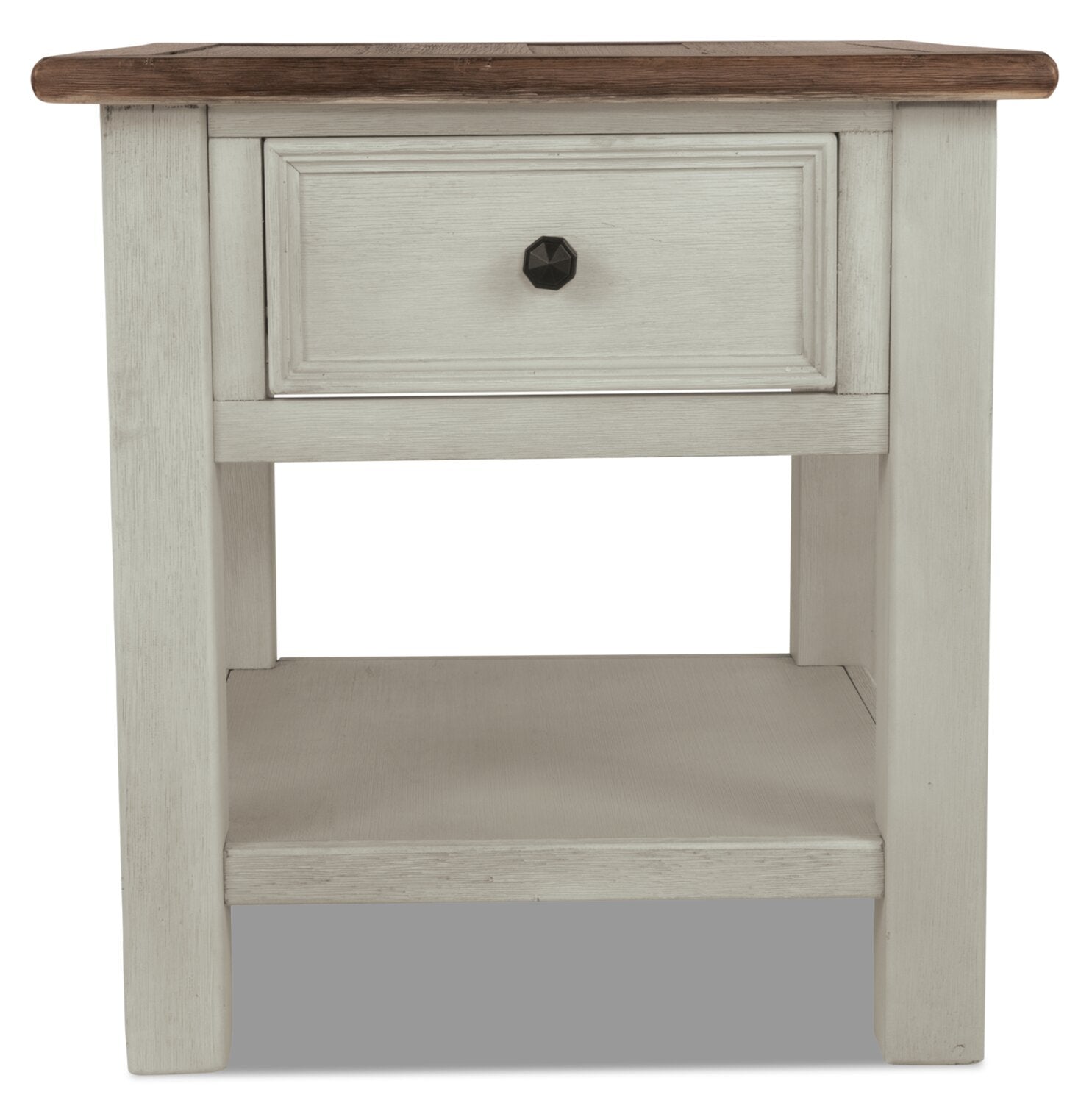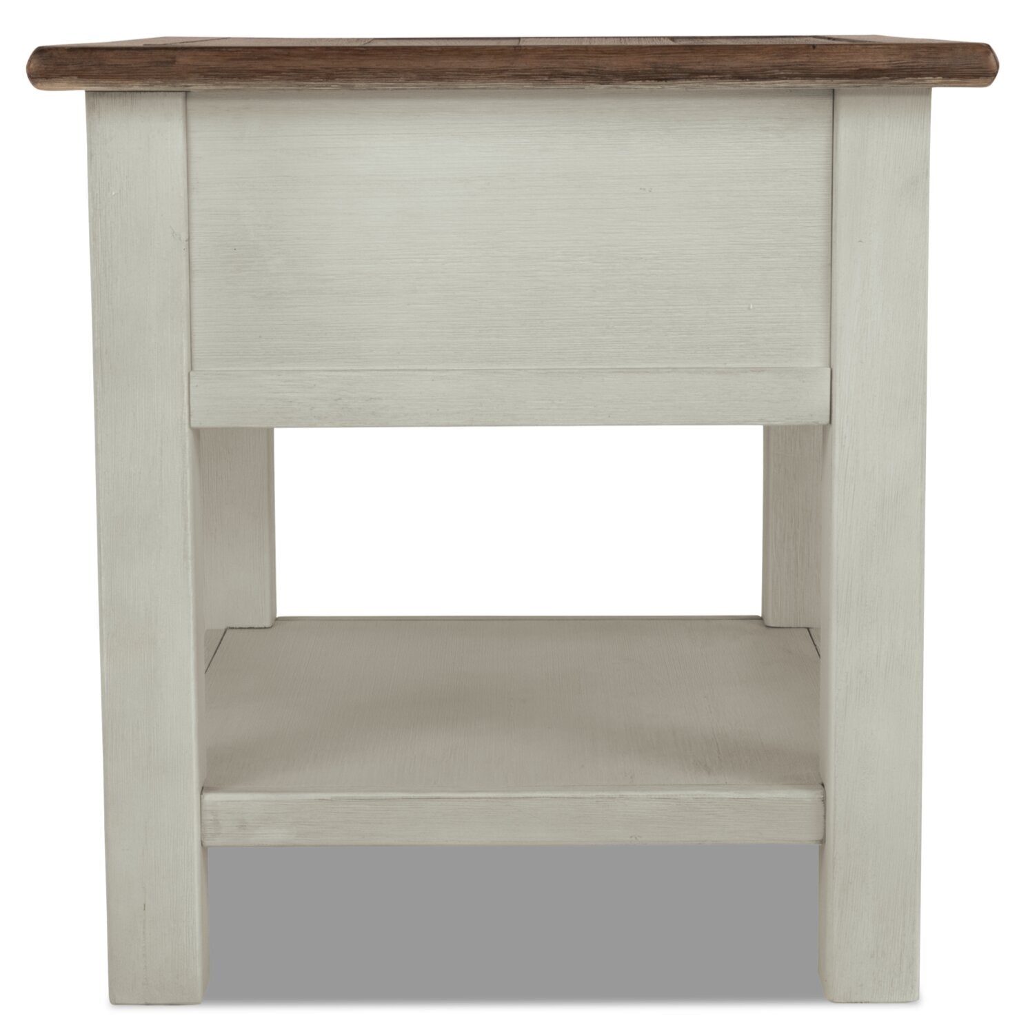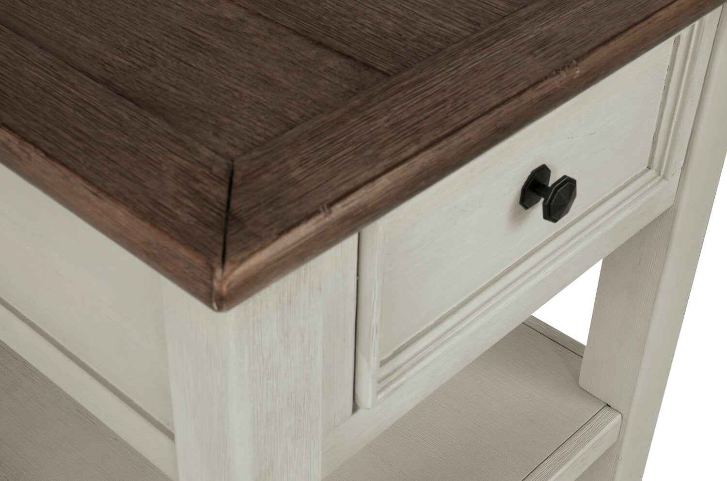Accent Details | Black metal knob on the drawer completes the farmhouse style of this piece. |